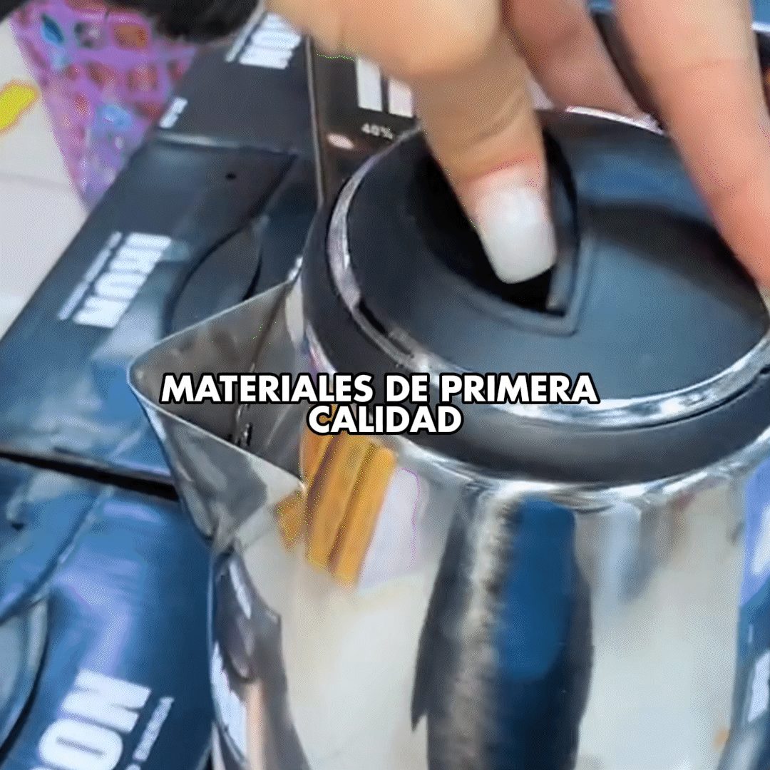 Con una potente resistencia de 2200W, el Hervidor Eléctrico de Aluminio Premium calienta el agua en cuestión de minutos. Esto no solo te permite disfrutar de tus bebidas favoritas rápidamente, sino que también te ayuda a ahorrar tiempo valioso en tu rutina diaria. Ideal para esos momentos en los que necesitas preparar una bebida caliente rápidamente, ya sea en la mañana o durante una tarde ocupada.
