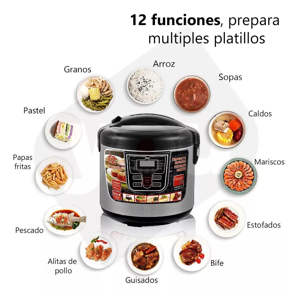 - Versatilidad en un Toque: Desde arroz perfectamente cocido hasta sopas y guisos, esta olla digital multifuncional te permite preparar una variedad de platillos con solo presionar un botón.
