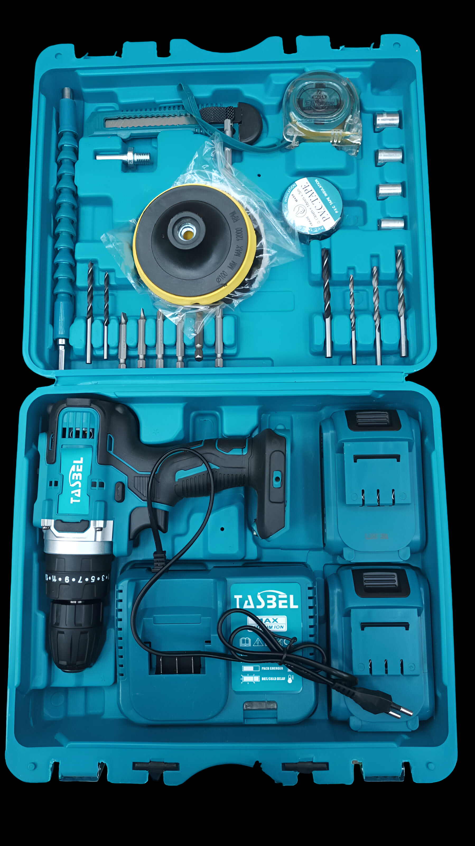 Este taladro inalámbrico cuenta con las siguientes características y accesorios:
